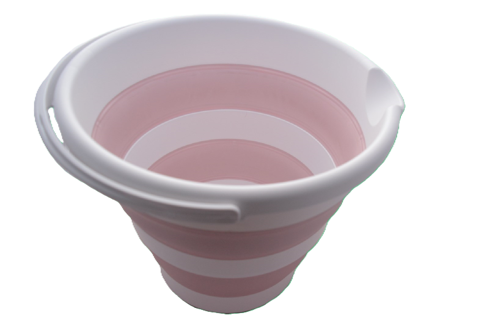 Praktické skládací vědro. Rozměr složené V6,5cm a rozložené V27cm, horní vnitřní průměr 29cm, 12litrů.
